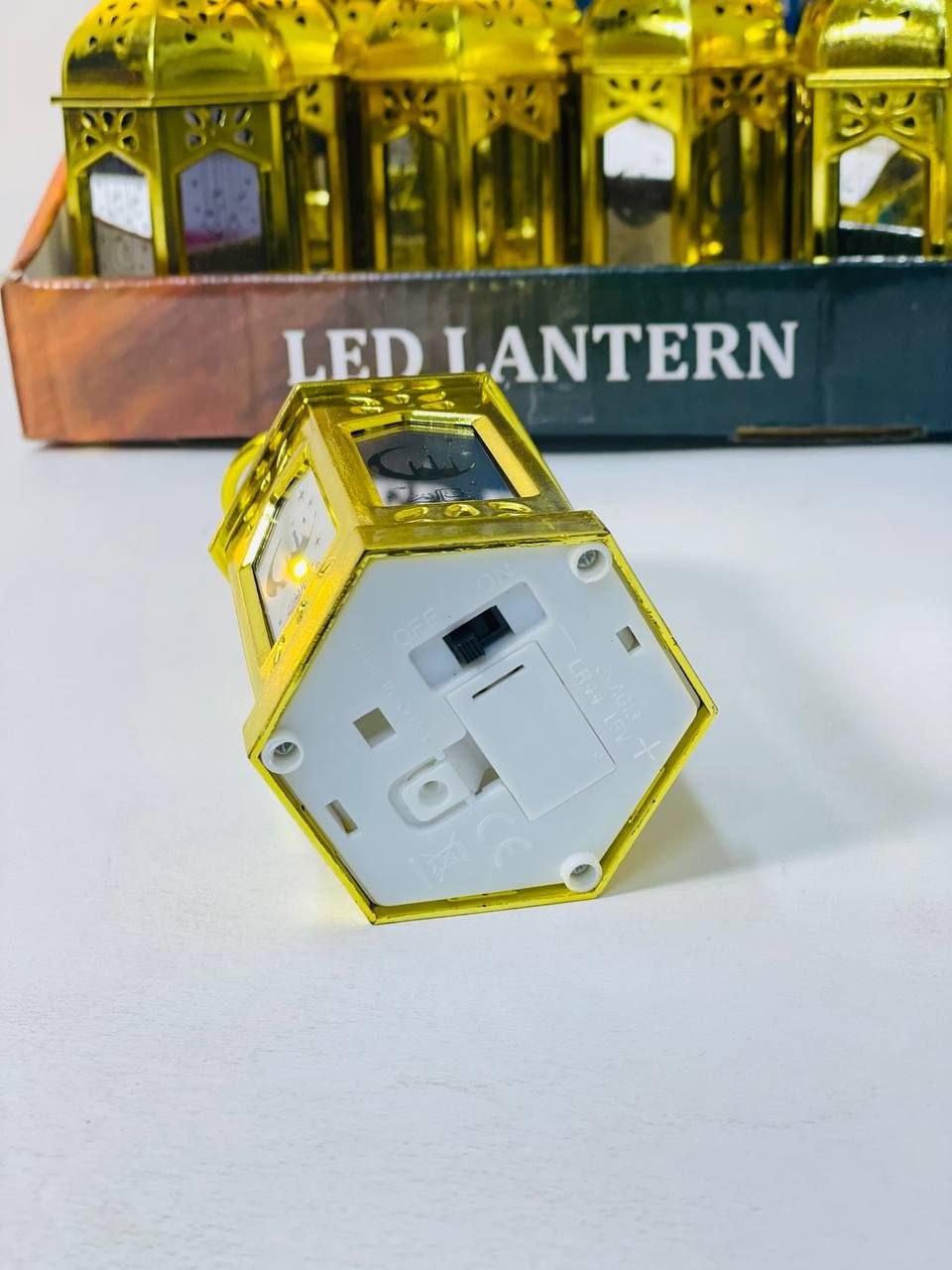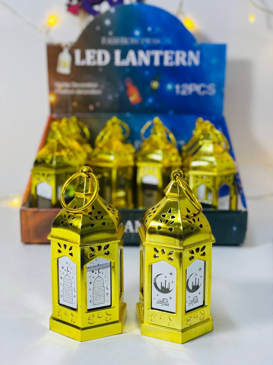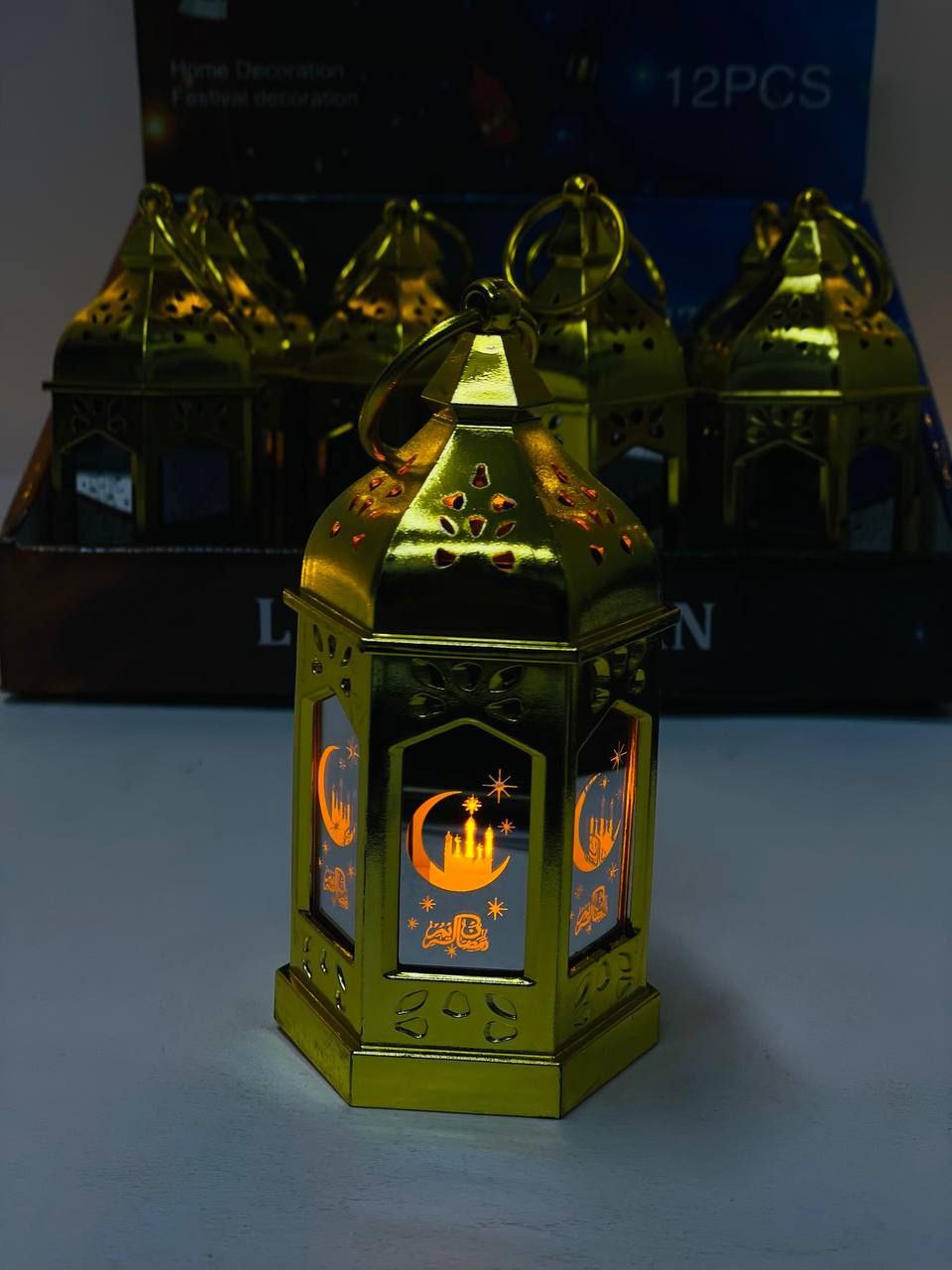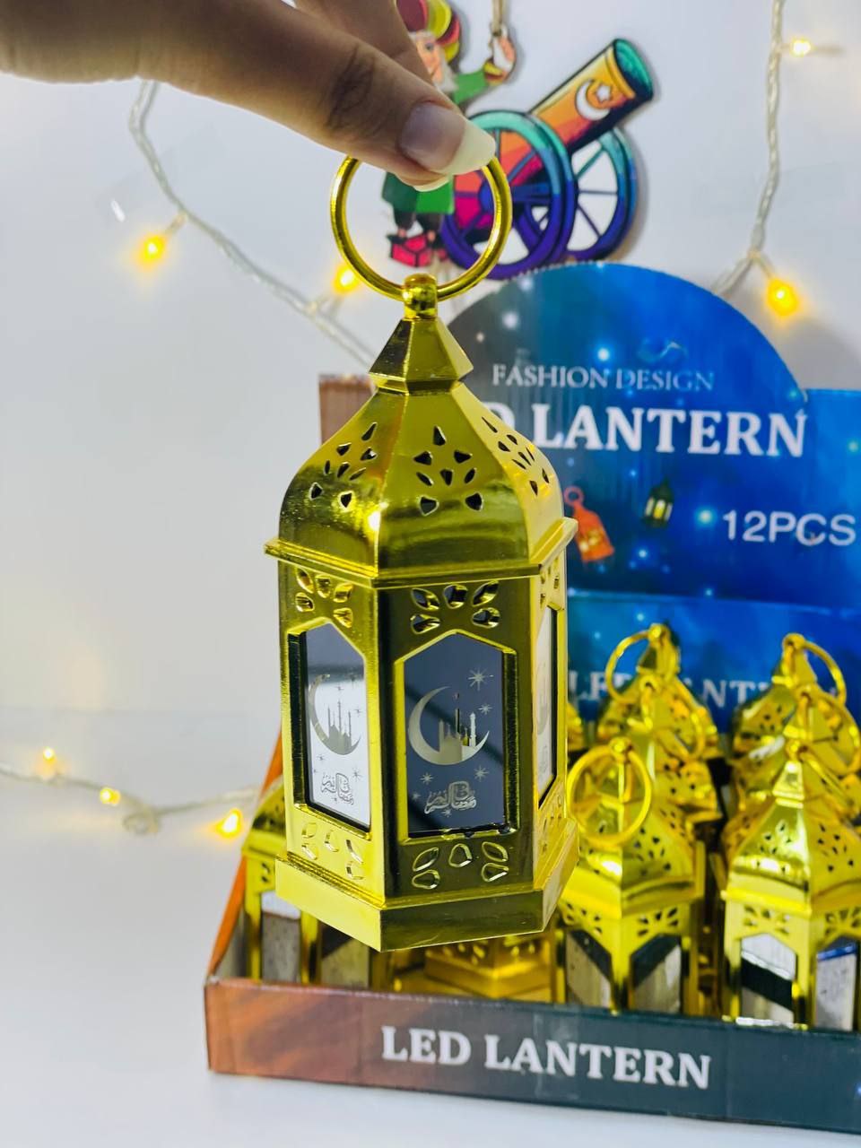 فانوس رمضان صغير وشيك بتصميم ذهبي جذاب يضيف لمسة رمضانية جميلة في أي مكان. الفانوس مصنوع من بلاستيك خفيف ومتين وسهل التعليق أو الاستخدام في تزيين البيت أو الأركان الرمضانية. بيحتوي على إضاءة LED هادية بتدي شكل دافئ ومبهج ومناسب للديكور أو الزينة الرمضانية.