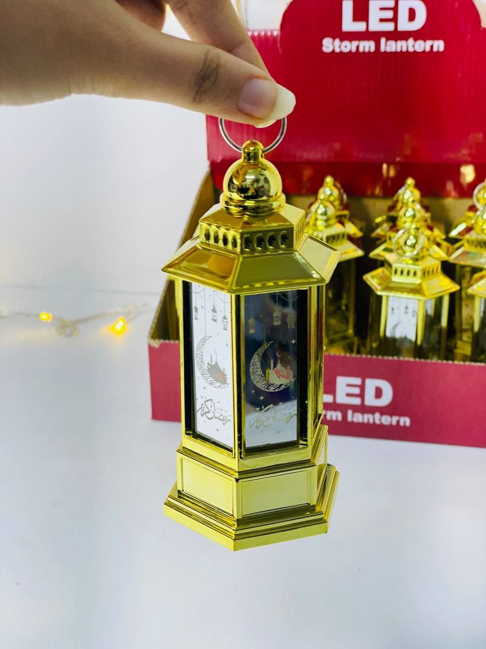 فانوس رمضان صغير وشيك بتصميم ذهبي جذاب يضيف لمسة رمضانية جميلة في أي مكان. الفانوس مصنوع من بلاستيك خفيف ومتين وسهل التعليق أو الاستخدام في تزيين البيت أو الأركان الرمضانية. بيحتوي على إضاءة LED هادية بتدي شكل دافئ ومبهج ومناسب للديكور أو الزينة الرمضانية.