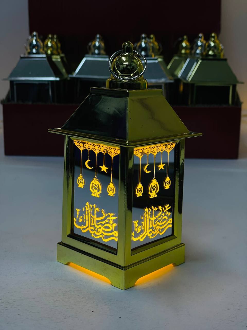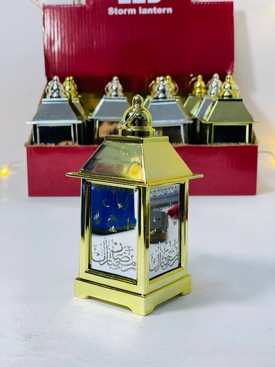 فانوس رمضان صغير وشيك بتصميم ذهبي جذاب يضيف لمسة رمضانية جميلة في أي مكان. الفانوس مصنوع من بلاستيك خفيف ومتين وسهل التعليق أو الاستخدام في تزيين البيت أو الأركان الرمضانية. بيحتوي على إضاءة LED هادية بتدي شكل دافئ ومبهج ومناسب للديكور أو الزينة الرمضانية.