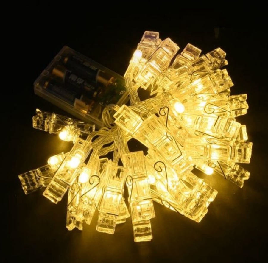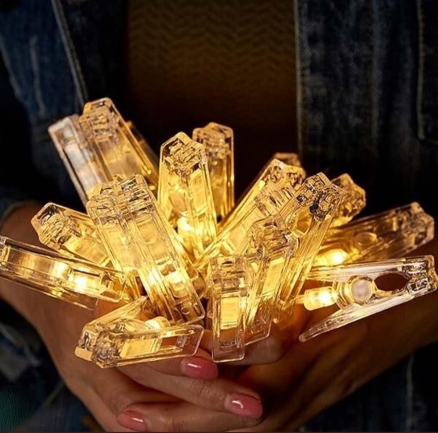 سلسلة إضاءة ليد بتصميم عصري مزودة بمشابك شفافة لتعليق الصور أو الكروت بطريقة جذابة. بتوفر إضاءة دافئة تضيف لمسة جمالية ورومانسية لأي مكان، مناسبة لتزيين الغرف، الحفلات، أو المناسبات الخاصة.