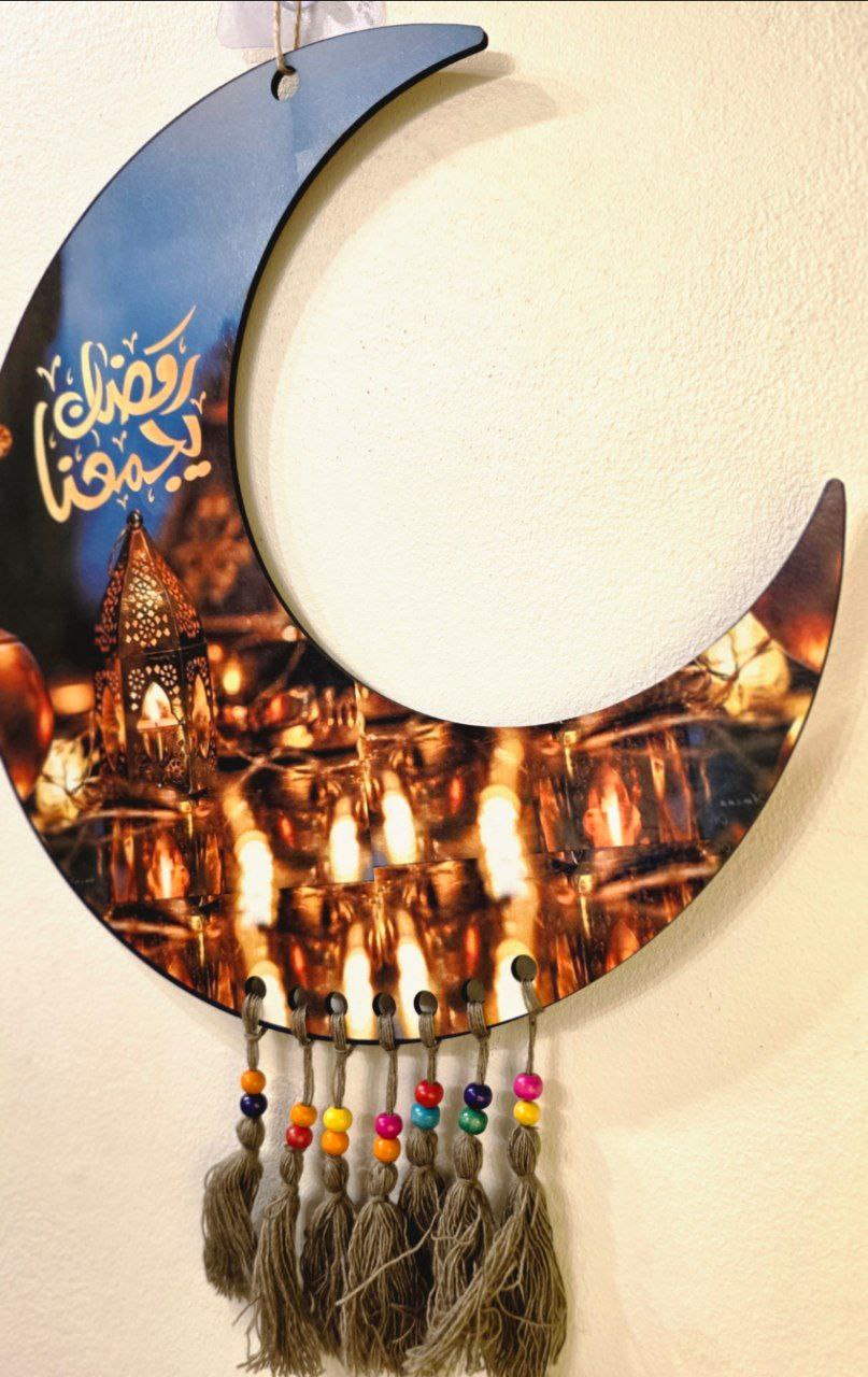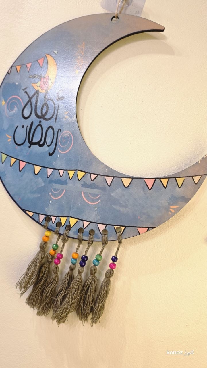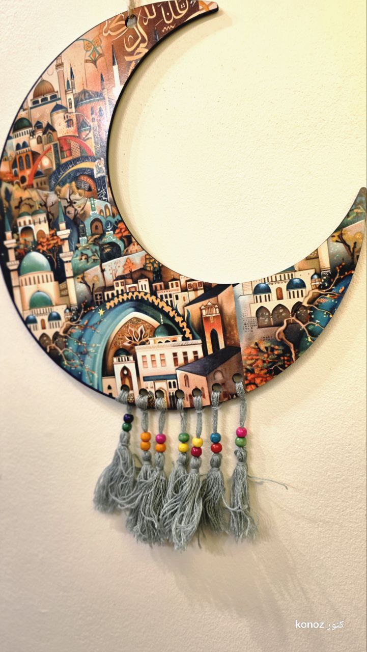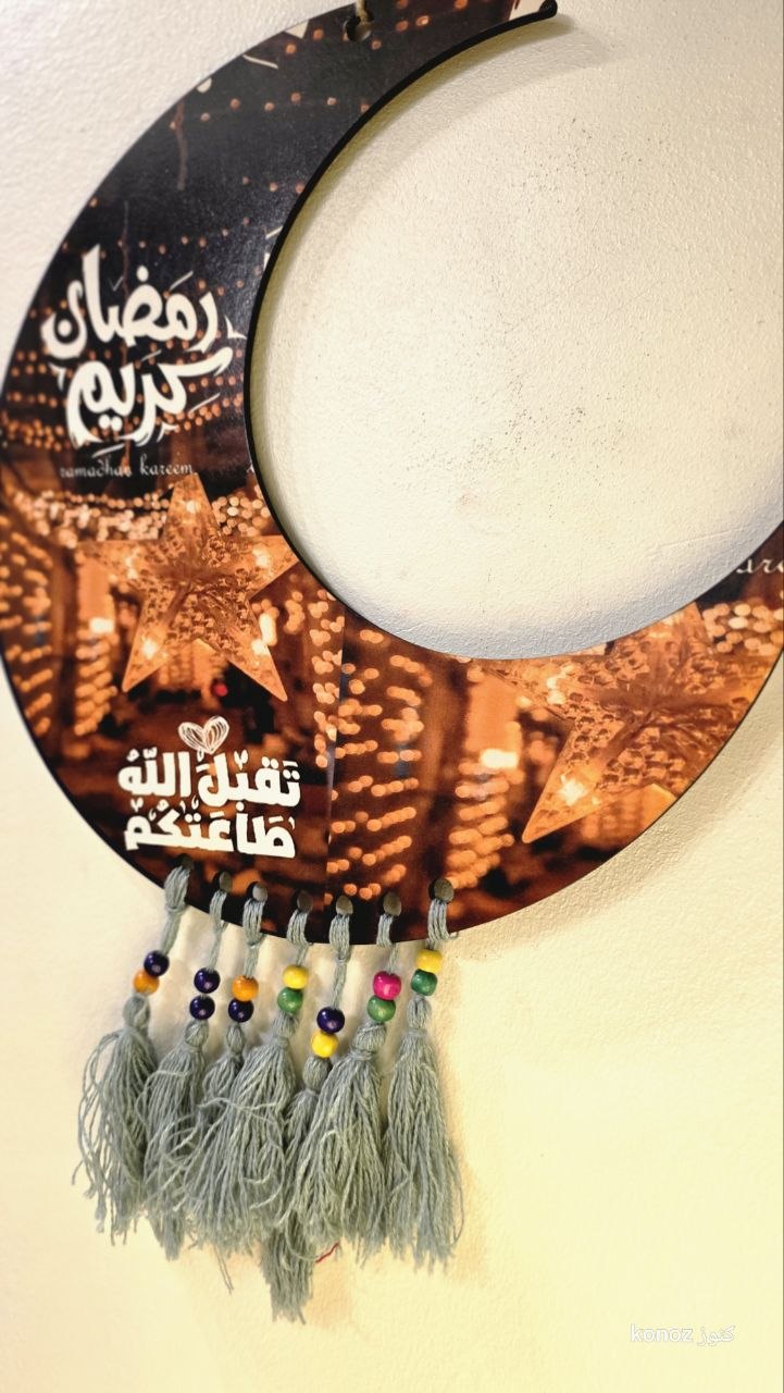 تعليقات خشبية مطبوعة طباعة مباشرة عالخشب 6 ملي ومطعمه بشراشيب قطن ملونه