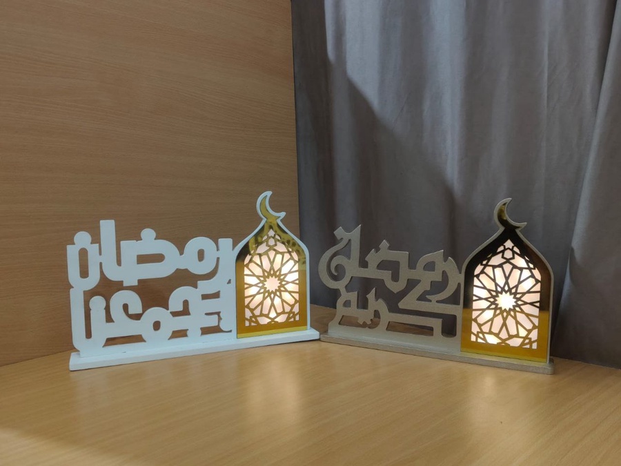 التصميم متوفر بلونين أنيقين (أسود وأبيض) مع تفاصيل ذهبية لامعة، مثالي لتزيين المنزل، المكتب، أو استقبال شهر رمضان بروح مميزة. قطعة تجمع بين البساطة والجمال وتناسب كل الأذواق.