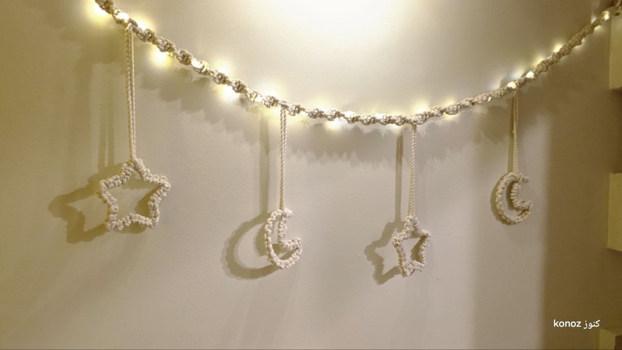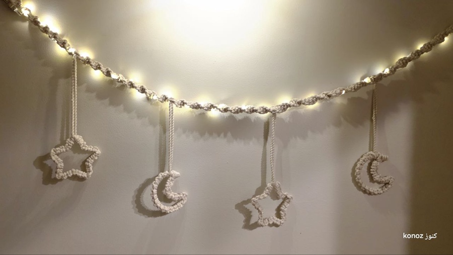 مكرمية على شكل هلال مضيء أنيق ✨ لمسة دافئة تزيّن مساحتك