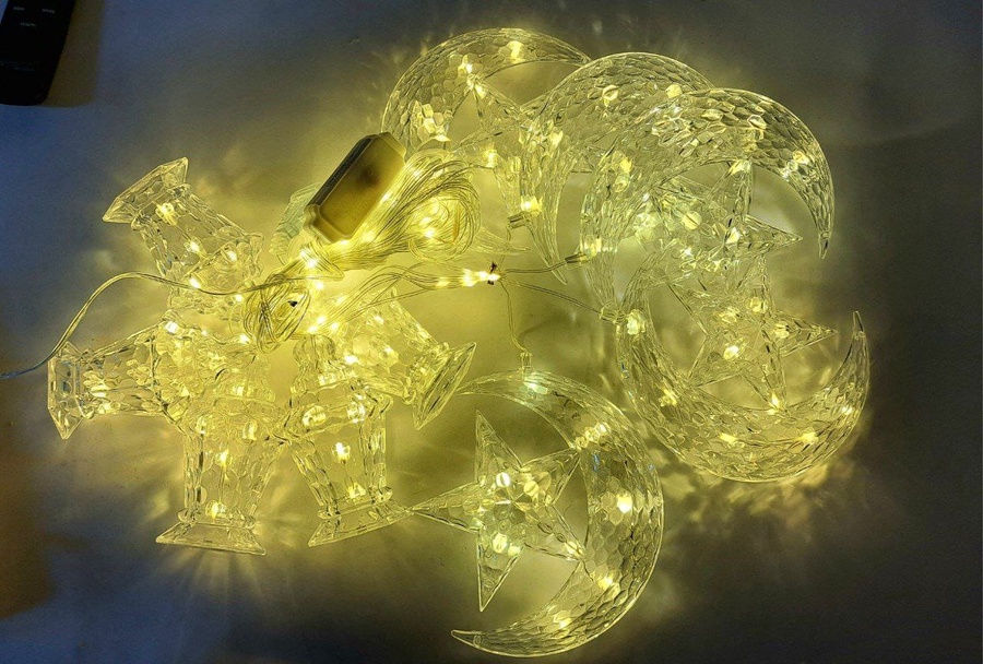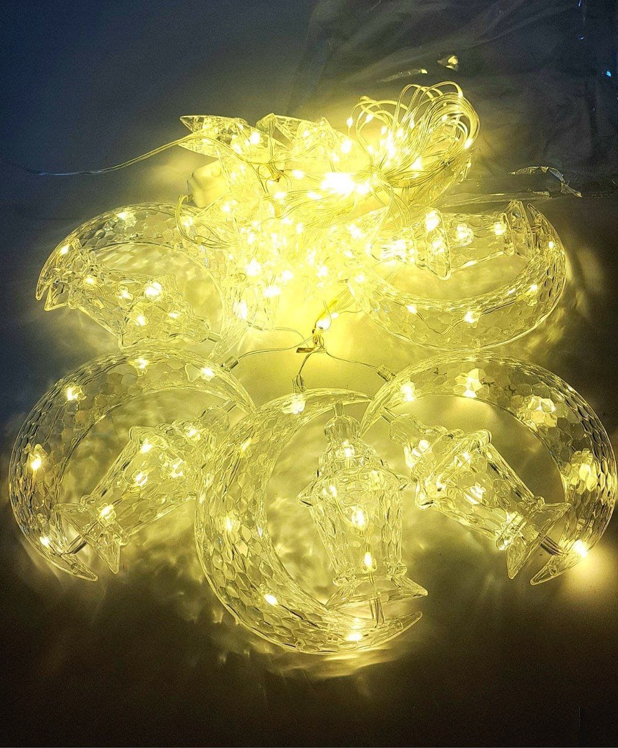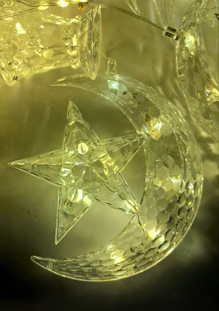 حوّل بيتك لعالم كله سحر مع ستارة نجوم وهلال LED ملونة، نورها الهادي يخلق جو رمضاني مختلف ويخلي كل قعدة مليانة بهجة 🌙✨