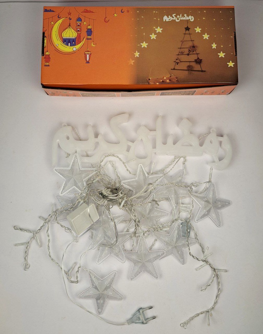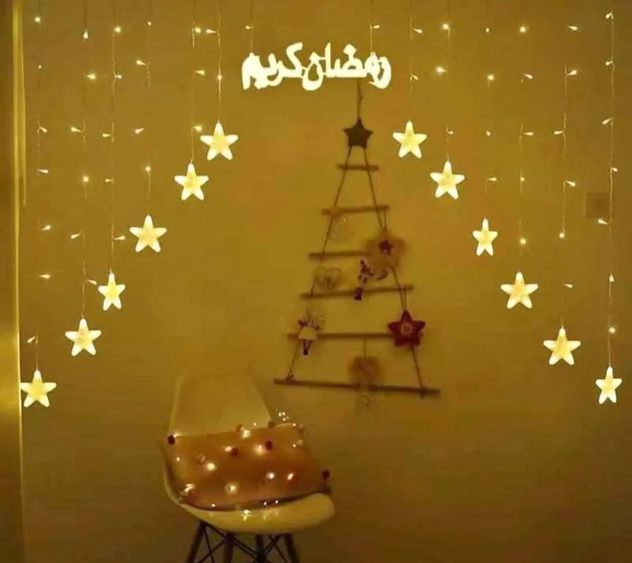 حوّل بيتك لعالم كله سحر مع ستارة نجوم وهلال LED بكلمة رمضان كريم، نورها الهادي يخلق جو رمضاني مختلف ويخلي كل قعدة مليانة بهجة 🌙✨