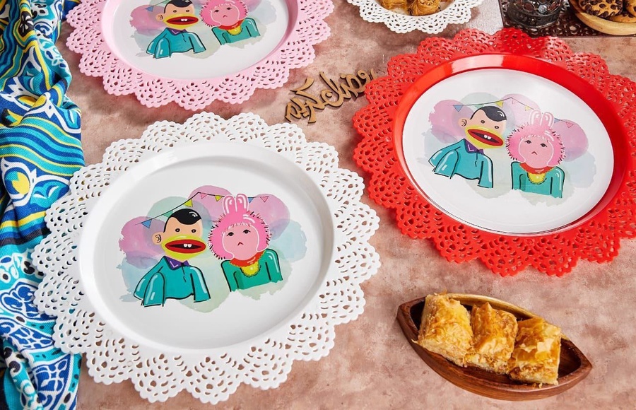 خلي سفرتك تحكي عن الذوق الأصيل مع صينية تقديم بشخصيات فنانيس ، تليق بعزوماتك وتدي لمسة فخامة لأي مناسبة ✨🫖
