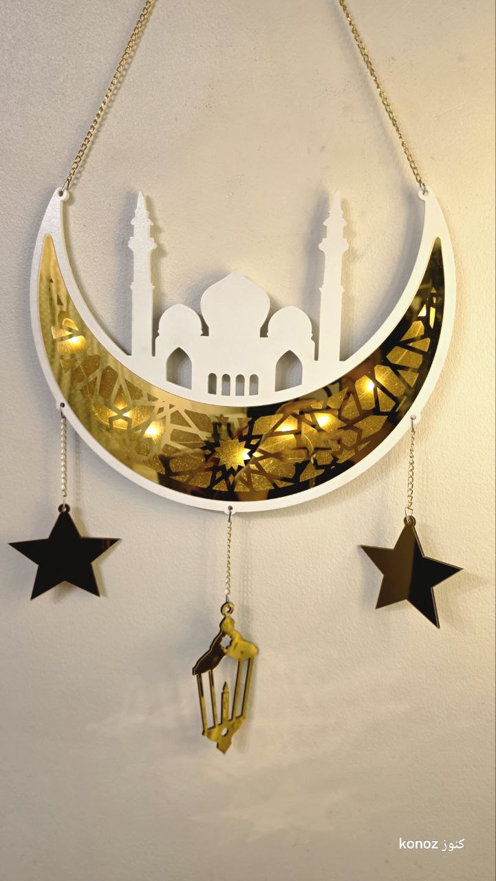 ديكور هلال رمضاني مضيء ✨ لمسة روحانية أنيقة تزيّن جدرانك