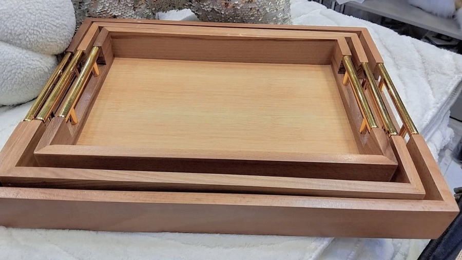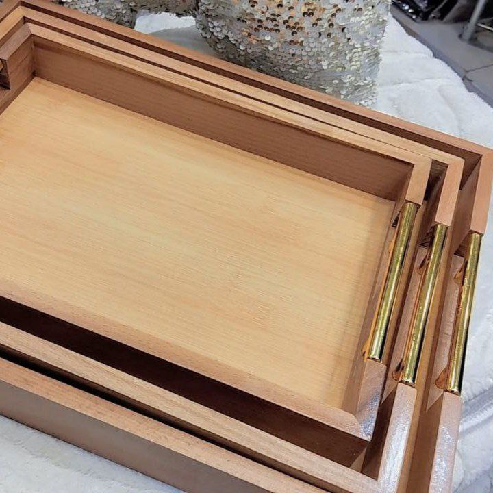 طقم صواني مصنوع من خشب البامبو عالي الجودة، بتصميم أنيق وبسيط يضيف لمسة راقية لسفرة رمضان ولمّات العيلة.
