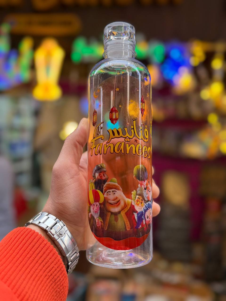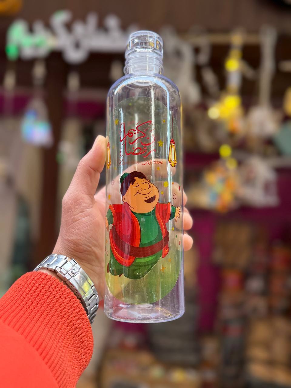 زجاجة أكريليك بأشكال رمضانية أنيقة، خفيفة ومتينة، مثالية لتقديم العصائر والمشروبات وتزيين السفرة في رمضان ولمسة ديكور مميزة.